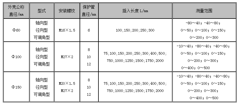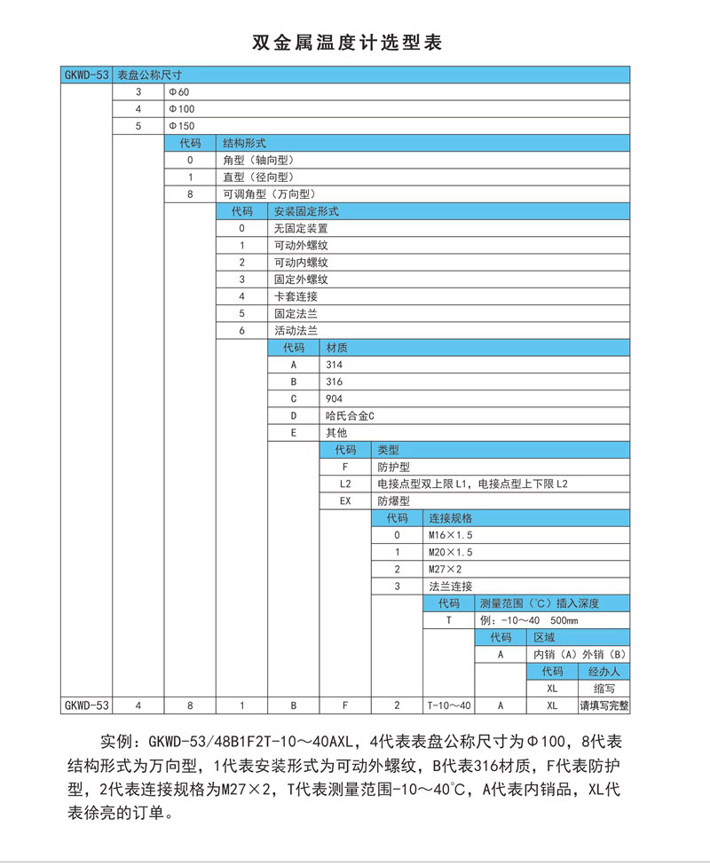 雙金屬溫度計選型表