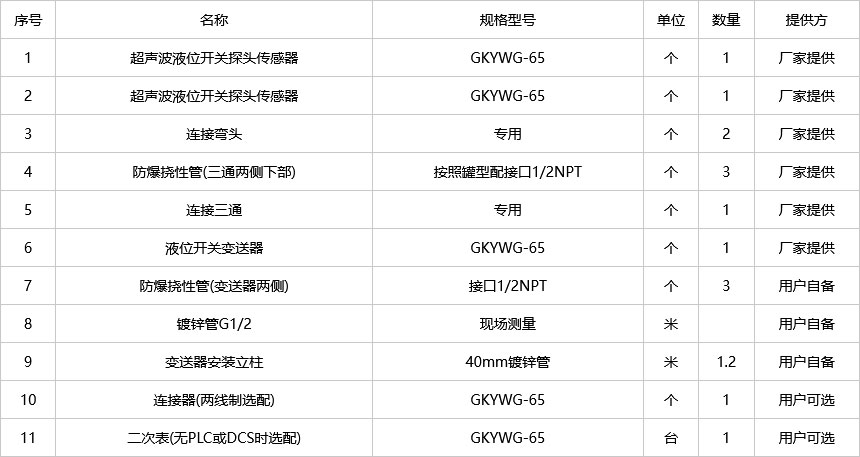 液位開關變送器撓性管的接口均為G1/2接口,現場配管時注意管接口一致。