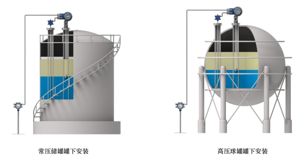 可選配多點平均溫度計、壓力變送器等溫度、壓力儀表實現溫度、壓力值的罐下顯示